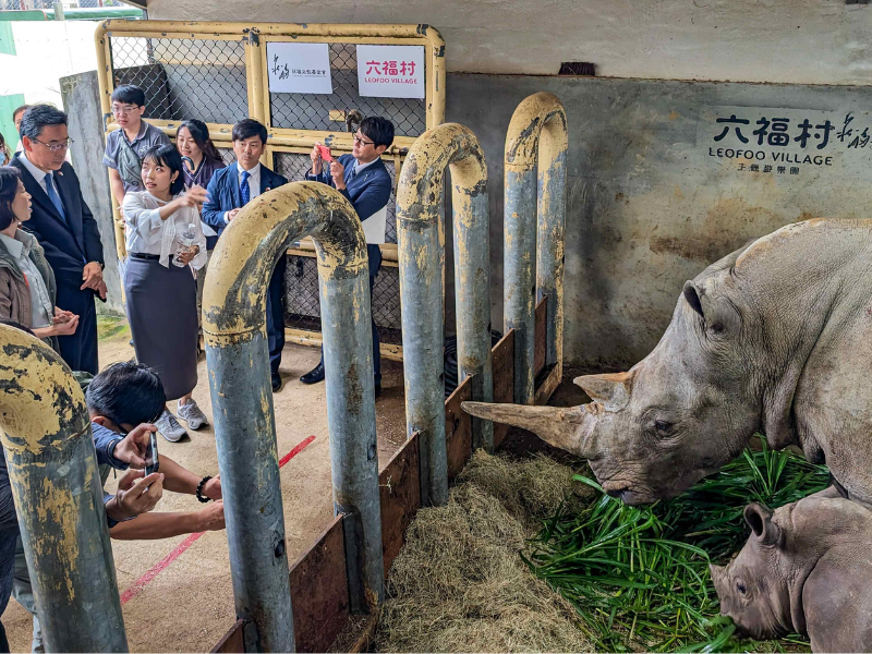 為促進動物血緣豐富化,莊福文化教育基金會將六福村的「犀牛艾瑪」送去日本東武動物公園了!在台日在動物輸出方面的共同努力後,今天(10/30) 在六福旅遊集團總裁暨財團法人莊福文化教育基金會董事長賴振融和東武鐵道台灣分公司總經理山內朋彥共同見證,由六福村主題遊樂園總經理葉忠岳、東武動物公園取締役社長石附栄一代表,完成「六福村X日本東武動物公園友好交流協定」,順利締結姊妹園,攜手為動物福祉而努力,未來將加強國際動物交流、醫療照養與專業人才培育。