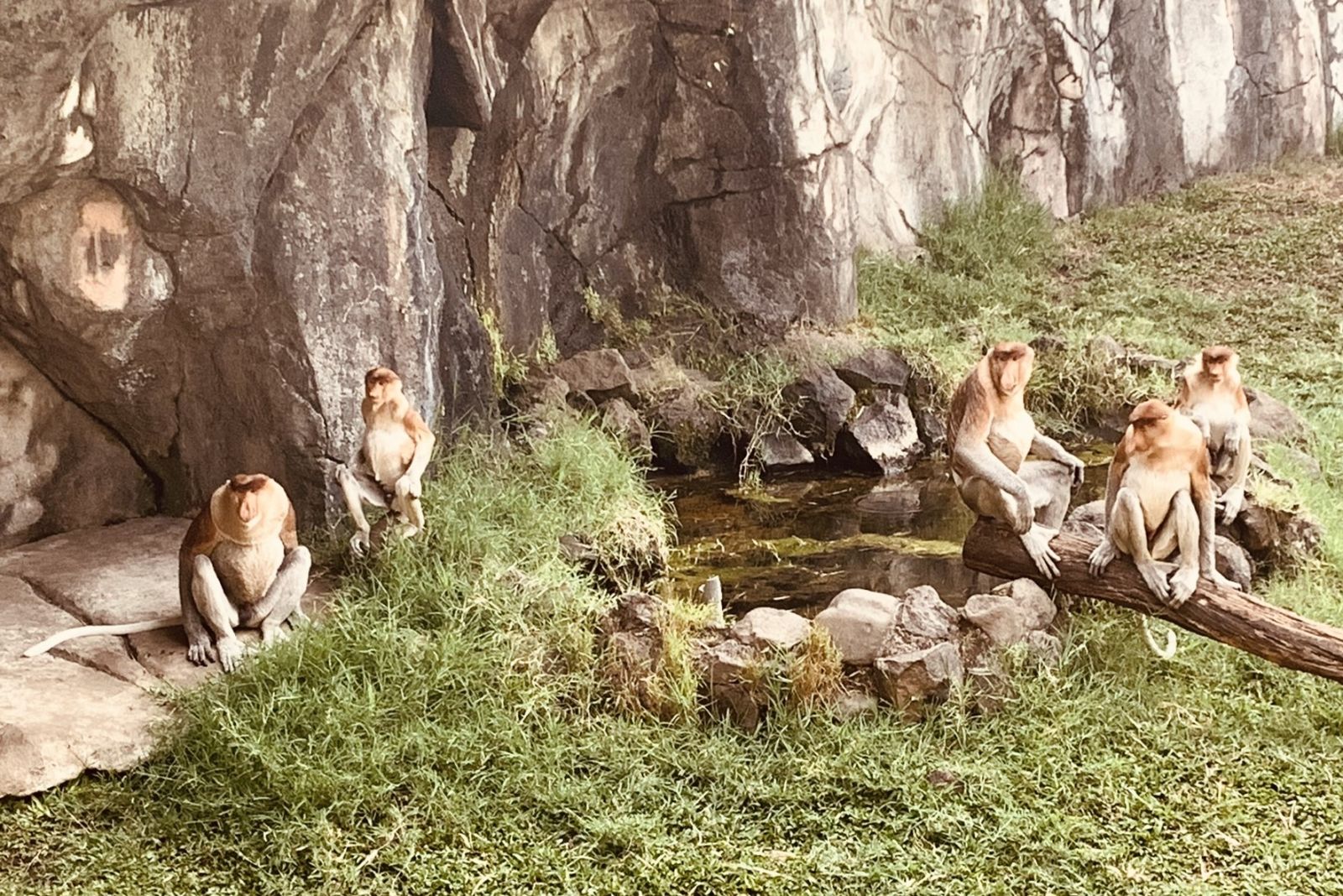 長鼻猴的家,數一數總共十來隻的猴子各據一方,只是園方很苦惱,因為全園只有唯一一隻母猴,只能把牠獨立起來重點保護,所以這名符其實是一間單身男子宿舍!